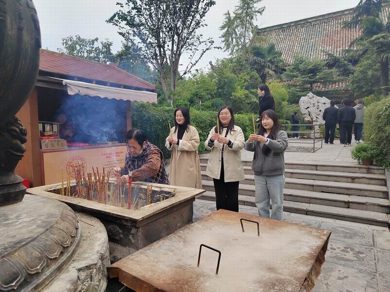 10月19日,阴天的静谧为旅程沉淀出一场深刻的精神洗礼。早餐后,我们首先前往大相国寺,千年古刹的静谧与香火缭绕的庄严,让人在阴天气息中愈发沉静。驻足大雄宝殿前,大家默默祈愿,既是对律所发展的期许,也是对彼此执业道路的祝福。